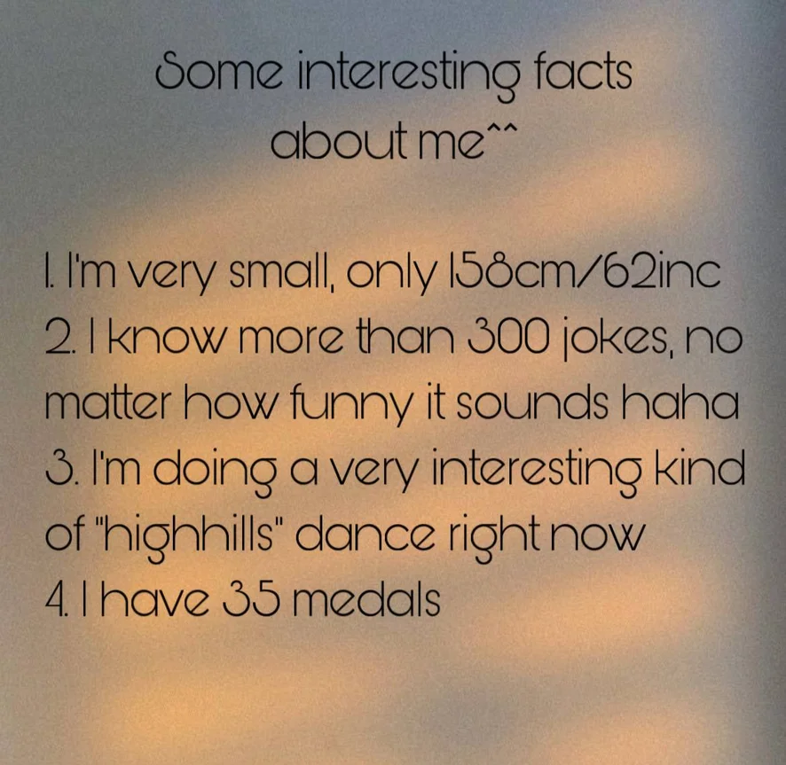 Hi everyone, my name is Evelyn, and I just turned 18. I love figure skating and have been doing it since youth, and now I go to dance classes. And my splits are definitely better than any ballerina's, haha. In general, I really want to find a real friend, or a kind gentleman^^